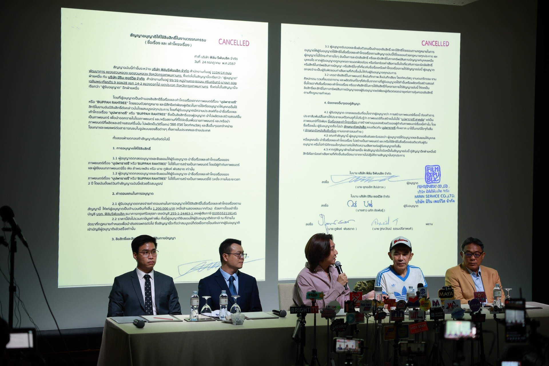 เมื่อบ่ายวันศุกร์ที่ 26 กันยายน 2568 เวลา 15.00 น. BeOnCloud ได้จัดงานแถลงข่าวเพื่อชี้แจงทุกประเด็นที่เกี่ยวข้องกับภาพยนตร์ "บุปผา" โดยได้ตอบทุกข้อสงสัยที่สังคมและสื่อมวลชนหยิบยกขึ้นมาพูดถึงในโลกโซเชียลอย่างครบถ้วน โดยเฉพาะเรื่องสิทธิ์การใช้ชื่อและโครงเรื่อง... โดยในงานนี้ได้มีคุณปอนด์ กฤษดา ประธานเจ้าหน้าที่บริหารบริษัท บี ออน คลาวด์ จำกัด และยังเป็นผู้อำนวยการสร้างพร้อมหนึ่งในทีมเขียนบทและผู้กำกับภาพยนตร์เรื่องนี้ร่วมกับคุณพิง ลำพระเพลิง และทีมทนายความร่วมชี้แจงต่อหน้าสื่อมวลชนที่ให้ความสนใจเข้าร่วมกันอย่างล้นหลาม ซึ่งได้มีการไล่ไทม์ไลน์ของที่มาหลากหลายประเด็น ประเด็นที่ 1: สิทธิ์การใช้ชื่อและโครงเรื่อง “บุปผาราตรี” ถูกต้องตามสัญญา บริษัท บี ออน คลาวด์ จำกัด ยืนยันชัดเจนว่าการสร้างภาพยนตร์ “บุปผา” ดำเนินไปอย่างถูกต้องตามกฎหมาย โดยบริษัท ฟิล์ม รีพับบลิค จำกัด (โดยนายยุทธเลิศ) ได้ลงนามทำสัญญาอนุญาตให้ใช้ลิขสิทธิ์ในชื่อและโครงเรื่อง “บุปผาราตรี” มาตั้งแต่เดือนกรกฎาคม 2567 และได้รับค่าตอบแทนไปเรียบร้อยครบถ้วนเต็มจำนวนแล้ว ต่อมาเมื่อ บี ออน คลาวด์ เข้ามาร่วมลงทุนกับบริษัท มิริน เซอร์วิส จำกัด จึงได้มีการทำสัญญาฉบับใหม่ โดยเพิ่ม บี ออน คลาวด์ เป็นคู่สัญญา พร้อมระบุผู้กำกับ คือ พิง ลำพระเพลิง และ กฤษดา วิทยาขจรเดช ซึ่งถือเป็นการแทนที่สัญญาเดิมโดยสมบูรณ์ ทั้งนี้ สิทธิ์การใช้ชื่อและโครงเรื่องยังคงเดิม ไม่ได้มีการกำหนดให้จ่ายค่าลิขสิทธิ์เพิ่มเติม เพราะเป็นการสร้างภาพยนตร์เพียงเรื่องเดียวภายใต้สิทธิ์ที่ตกลงไว้ตั้งแต่แรก ดังนั้น การที่มีการโพสต์หนังสือสัญญาฉบับเดิมที่มีการประทับตรายกเลิกบนโซเชียลมีเดียจากอีกฝ่าย จึงไม่ก่อให้เกิดผลทางกฎหมาย และสัญญายังคงมีผลบังคับใช้อย่างสมบูรณ์ และบี ออน คลาวด์ ยังคงมีสิทธิ์ใช้ชื่อและโครงเรื่อง “บุปผาราตรี” ได้ตามเดิม อย่างไรก็ตาม บริษัทก็ได้เปิดพื้นที่ให้แฟน ๆ มีส่วนร่วม ด้วยการเชิญชวนให้ช่วยกันเสนอชื่อใหม่ผ่านแฮชแท็ก #หนังที่ยังไม่ตั้งชื่อ ภายในงานแถลงข่าววันนี้และได้รับความสนใจจากสื่อมวลชนและแฟน ๆ เป็นอย่างมากจนติดเทรนด์ บน “X” ประเด็นที่ 2: การหมิ่นประมาทด้วยการโฆษณาในประเด็น “ที่เกี่ยวกับลิขสิทธิ์และการผลิตภาพยนตร์” ผ่าน บัญชีผู้ใช้ “X” ชื่อ “ผู้กำกับเลว” บริษัท บี ออน คลาวด์ จำกัด ระบุว่า ตลอดเวลาที่ผ่านมานั้นได้พยายามรักษาท่าทีประนีประนอม ไม่ต้องการตอบโต้ข้อกล่าวหาที่เกิดขึ้นในสังคม แต่เมื่อมีการให้สัมภาษณ์และโพสต์ข้อความซ้ำ ๆ ในลักษ
